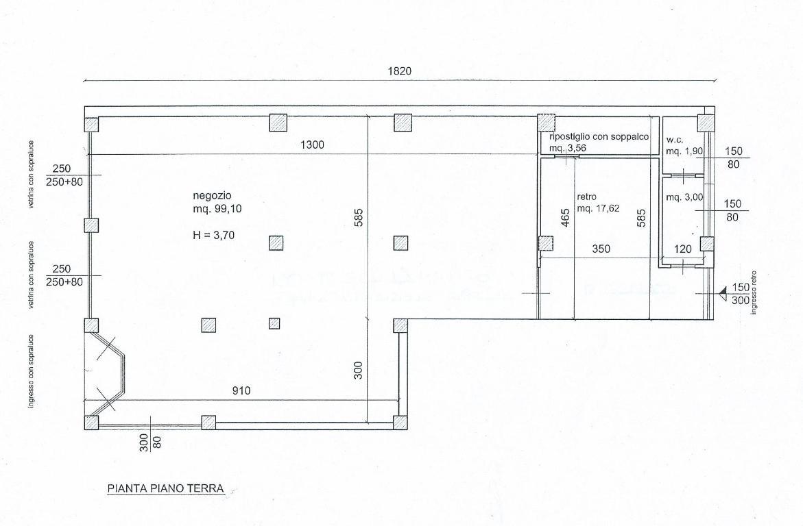 Seveso zona centrale, negozio/ufficio di mq. 125, piano terra con due vetrine, composto da: locale open-space in ordine di mq. 99, retro di mq. 26 con ripostiglio e bagno. Altezza locali mt. 3,70. Riscaldamento centralizzato: attualmente il negozio non ha radiatori, il retro invece è riscaldato. € 700/mese + € 110/mese di spese condominiali. Classe energetica G (77,62 KWh/mc/anno). Libero.